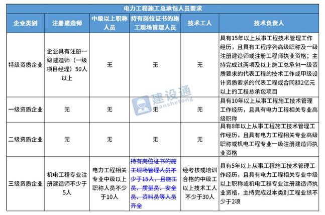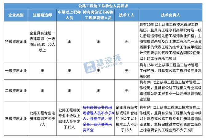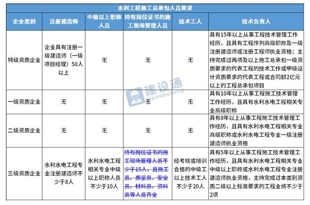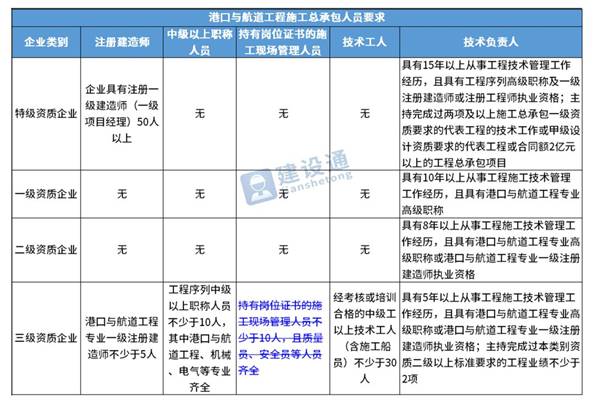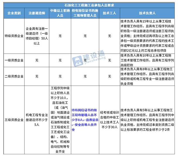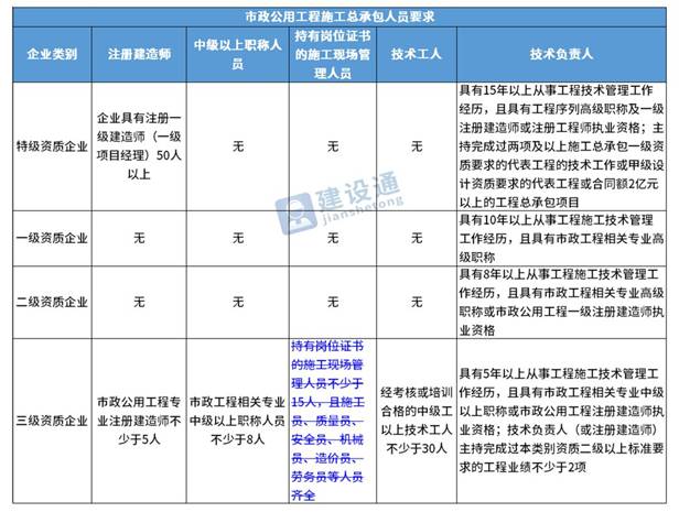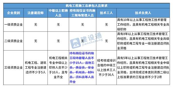 換句話說,并不是所有企業資質都不要求有建造師等企業人員。施工總承包三級資質企業對建造師等人員仍有要求,一級資質、二級資質企業保留技術負責人這一項要求,特級資質另有規定。