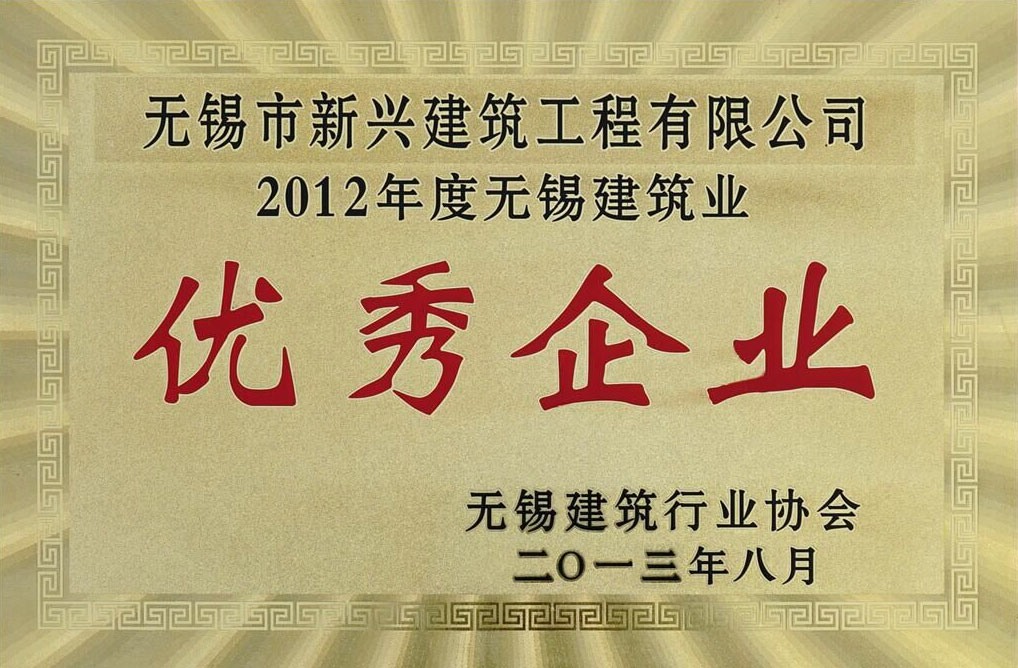 2013.08 2012年度無錫建筑業優秀企業